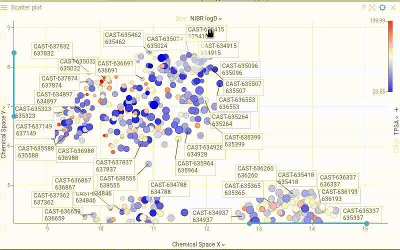 One of the unique features of Datagrok is the ability to create tooltips that interactively visualize groups of rows. For example, you can create a tooltip that uses a scatterplot to visualize the following: