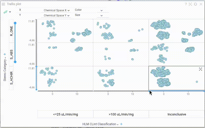 Trellis Plot automatically picks up element renderers for rendering categories. For instance, this is how it looks for chemical structures after performing R-Group Analysis: