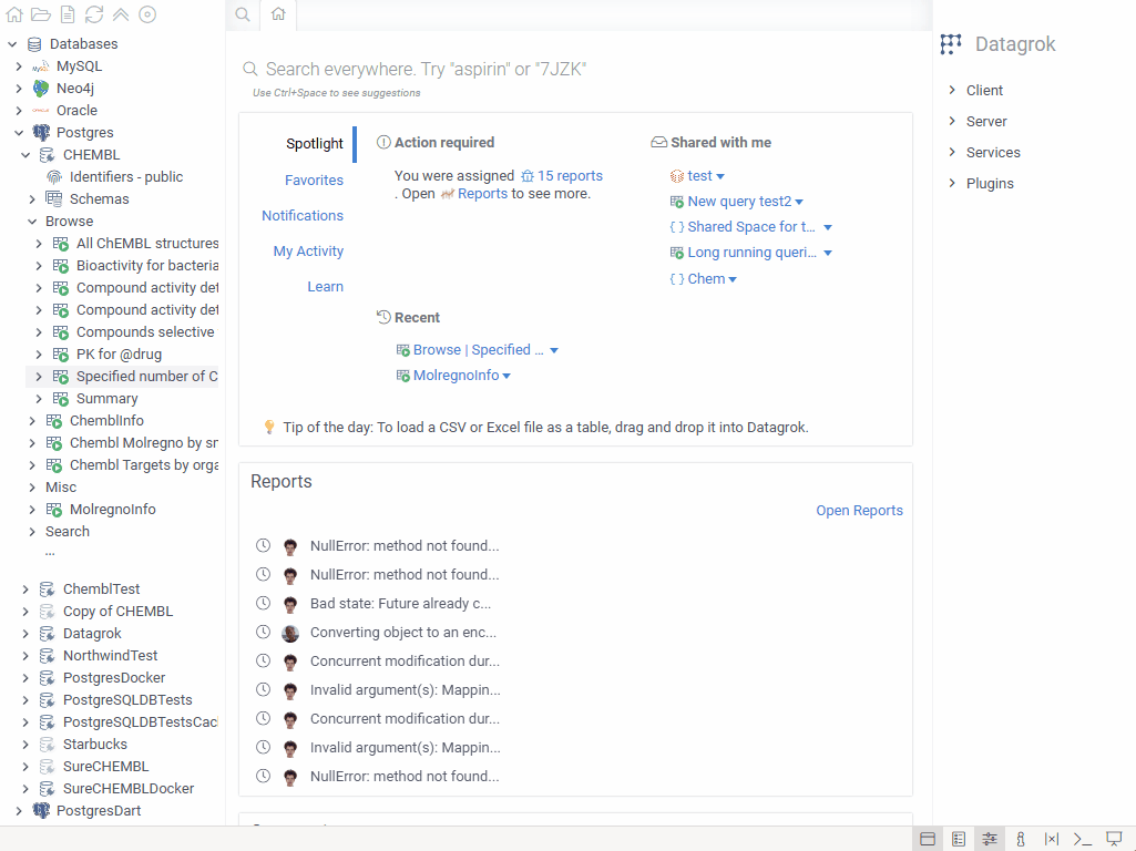 Datagrok provides several tools for creating, exploring, and editing queries.
