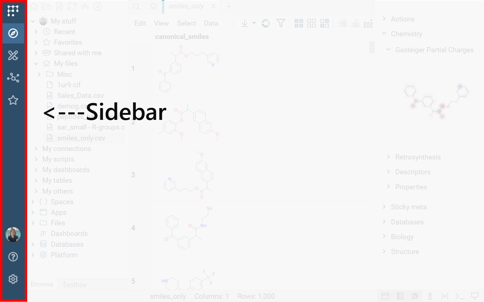 This page explains how the Datagrok interface is organized, how its components work together, and how to navigate the platform.