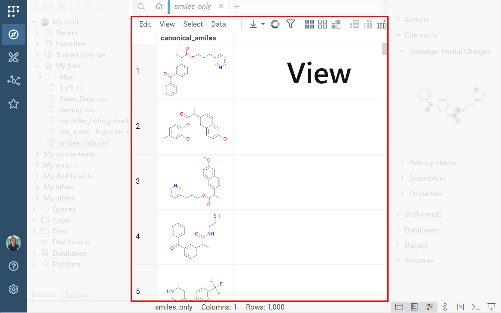 desc_canvas_aug30 Table View. If you omit the Table View name, Datagrok opens the