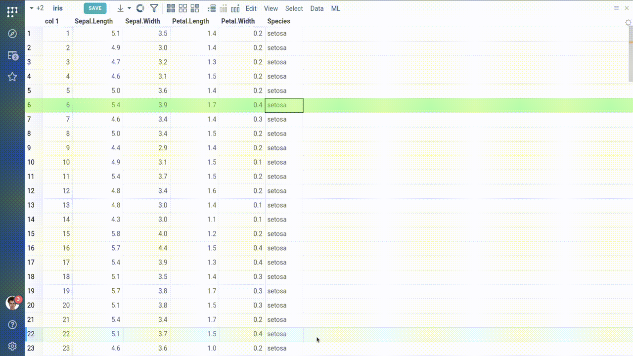 Datagrok offers a wide range of context-aware visualizations. In tables, $X$ represents feature columns and $y$ denotes the target column.