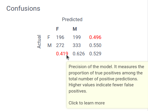 | Confusion matrix | Rows represent actual classes, columns represent predicted classes, and relevant metrics are displayed. | Classification problems ($y$ is categorical) | Confusion matrix | |