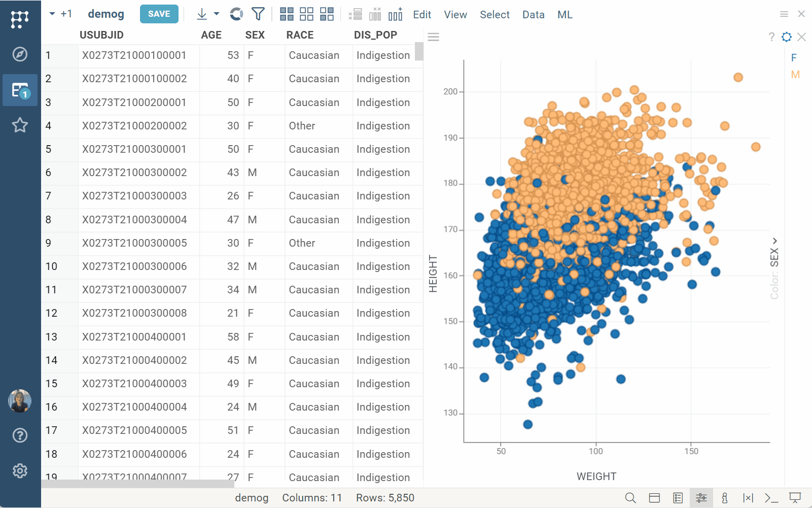 To learn about data transformation options, visit Transformation. To learn how to cluster data, analyze variances, and perform other ML tasks, visit Explore.
