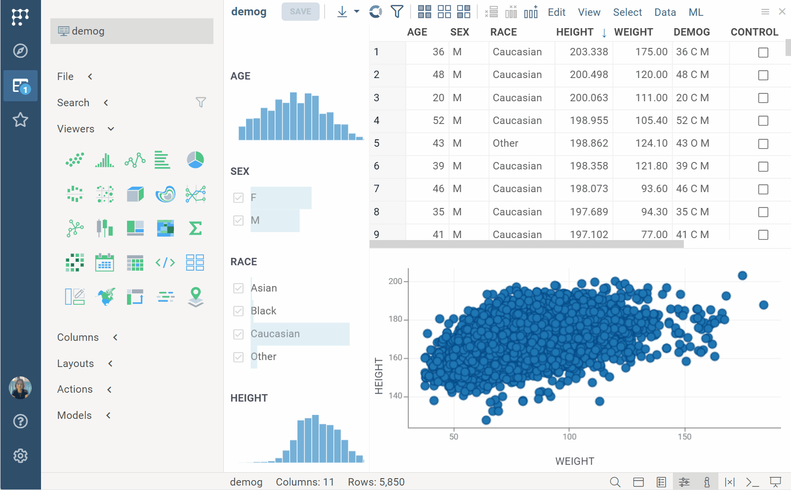 - Clicking a specific data point on a scatterplot updates the current row across all viewers.