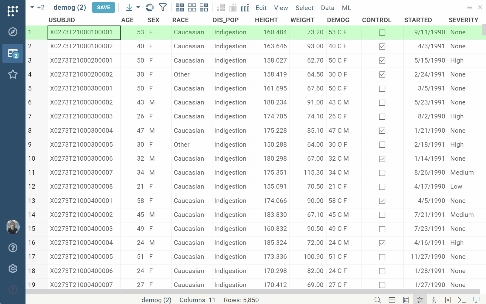 - For layouts that include non-grid viewers, all data columns used in these viewers become the columns of interest.