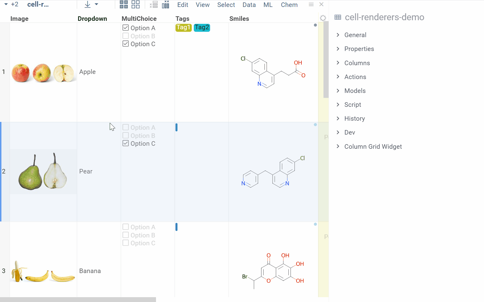 - Optional. To specify a column's semantic type, tags, or cell renderer, use the column's properties.