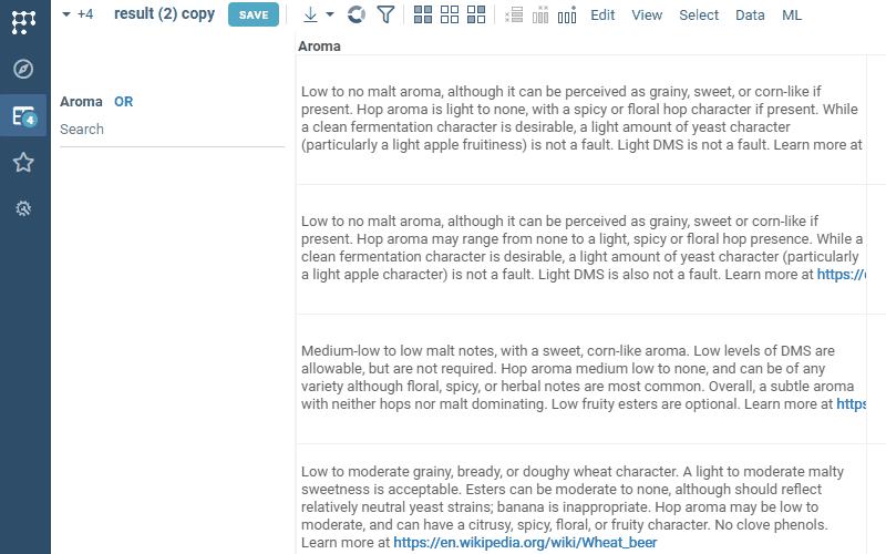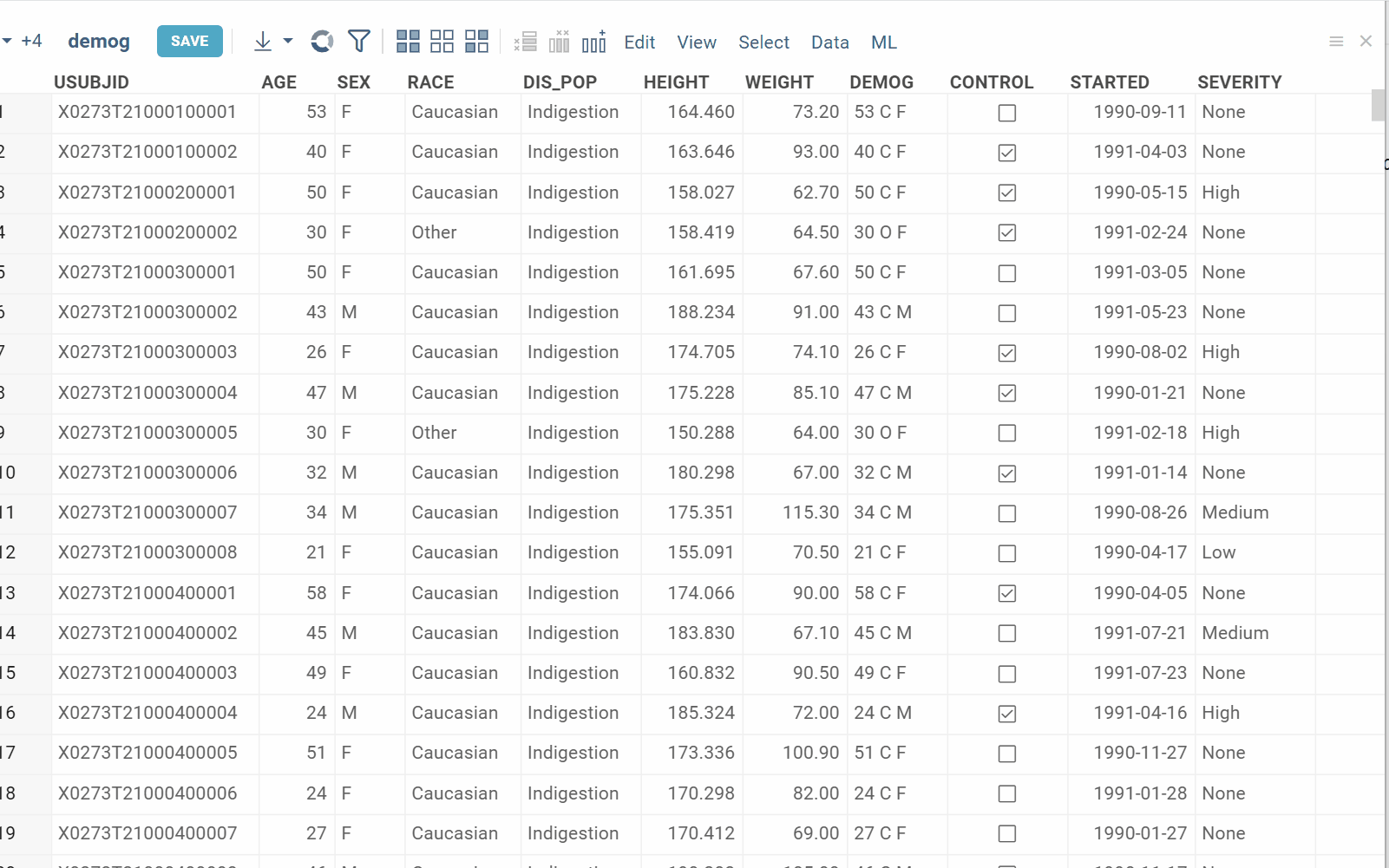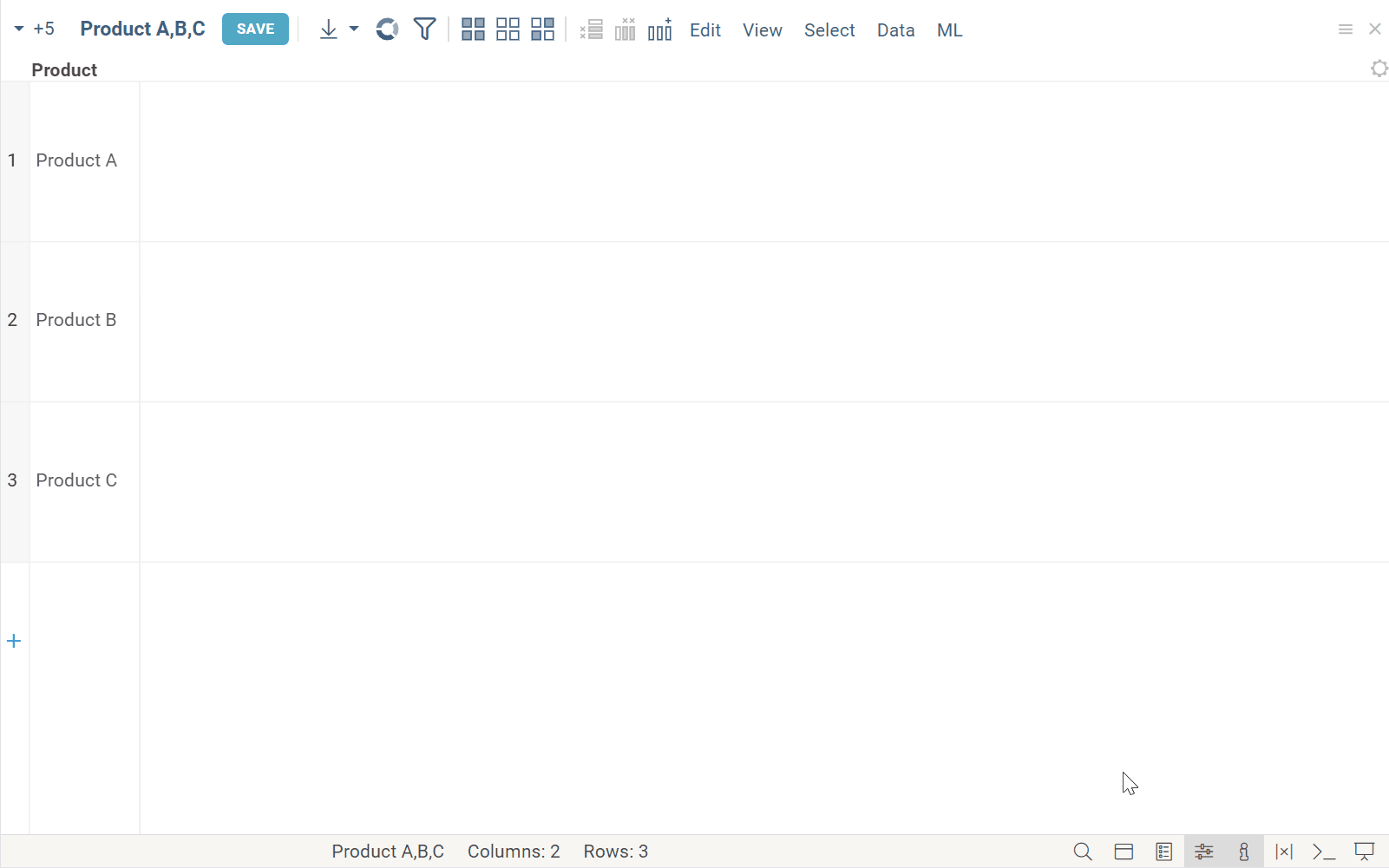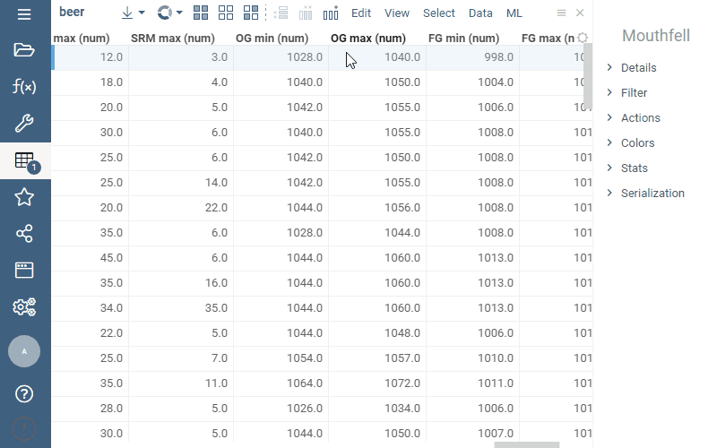 Subject to permissions, you can add, delete, or modify records in your dataset. In addition, the Top Menu provides multiple options for data cleaning and transformation. For example, you can add calculated columns, impute missing values, delete duplicates, and more.